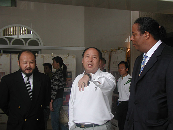 集團(tuán)公司董事長(zhǎng)陳啟建先生在為華人華商會(huì)主席介紹開(kāi)發(fā)項(xiàng)目