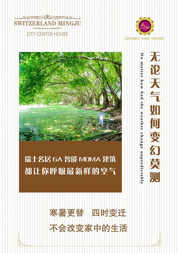 華富地產(chǎn)二十年產(chǎn)業(yè)求索,已經(jīng)把創(chuàng)新的基因深深植入企業(yè)發(fā)展的“頂層設(shè)計”。在瑞士名居,緊緊圍繞尊貴業(yè)主三大生存要素——空氣、水和健康,依托6A智能ΜΟΜΛ建筑技術(shù)予以全方位關(guān)注和全面控制!