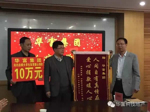 華富集團董事長陳啟建得知這一消息后,第一時間安排與農(nóng)業(yè)大學(xué)取得聯(lián)系,為飽受病疼折磨的學(xué)子雪中送炭,捐款十萬元,為他送去活著的希望。