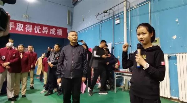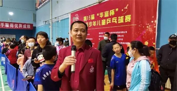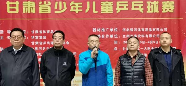 甘肅省乒乓球運動協(xié)會會長韓力宣布第十五屆“華富杯”甘肅省少年兒童乒乓球賽開幕。