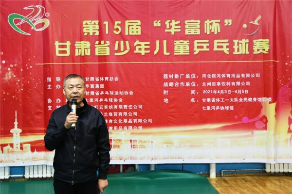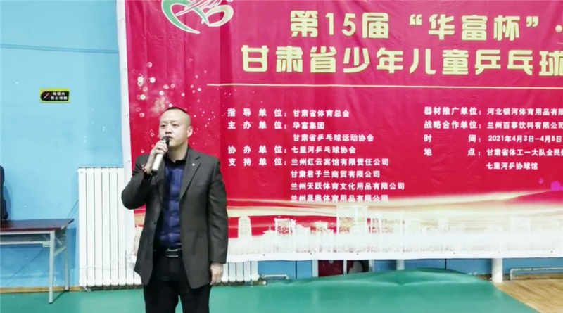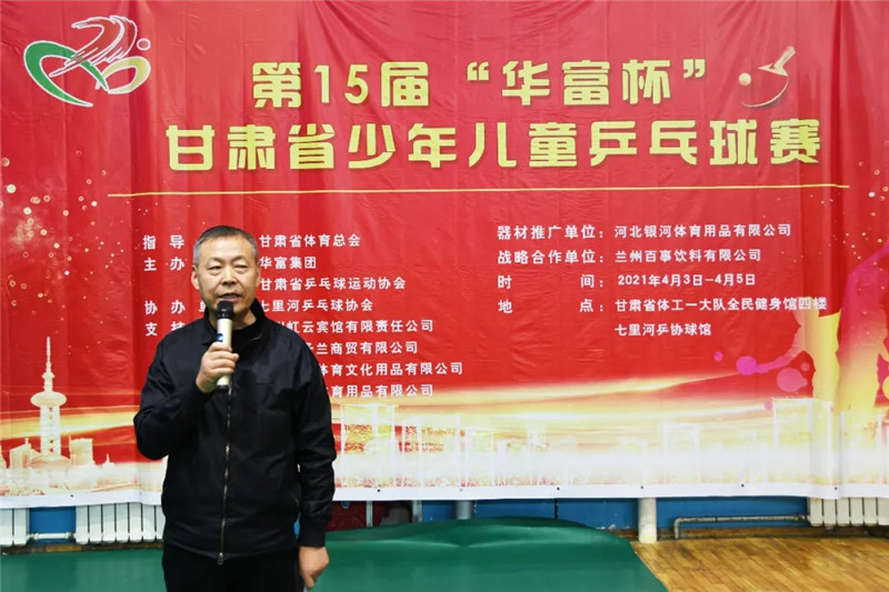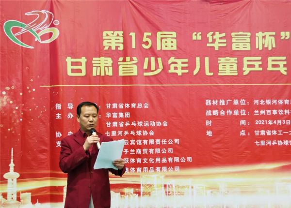 華富集團副總裁張華宣布第十五屆“華富杯”甘肅省少年兒童乒乓球賽圓滿閉幕