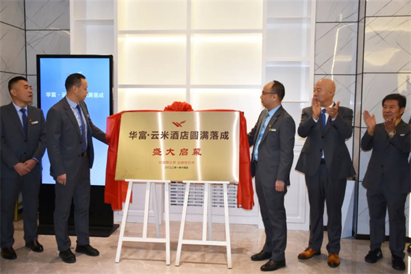 華富信息集團(tuán)副總裁、開發(fā)公司總經(jīng)理陳亮先生與華富信息集團(tuán)副總裁、投資經(jīng)營(yíng)管理中心總裁、云米酒店管理公司總經(jīng)理張華先生一同為酒店揭幕