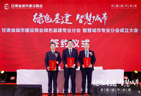 成立大會(huì)上,省城市建設(shè)商會(huì)綠色基建專業(yè)分會(huì)、智慧城市專業(yè)分會(huì)分別與甘肅省建筑業(yè)聯(lián)合會(huì)、蘭州市建筑業(yè)聯(lián)合會(huì)、甘肅銀行、甘肅農(nóng)商銀行簽訂戰(zhàn)略合作協(xié)議。